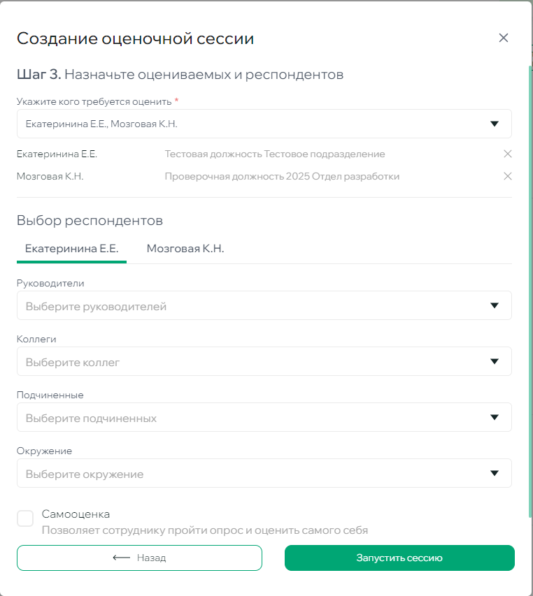 - Выберите коллег оцениваемого
